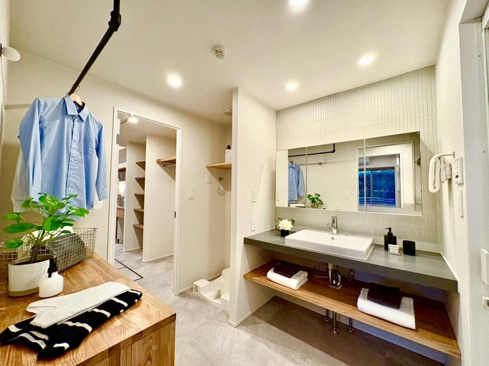 平日の朝であっても、落ち着きとくつろぎを感じられる。歯磨き粉が行方不明になるようなごちゃごちゃ感も解消。スムーズに身支度が完了します。コーディネートされた空間で気持ちよく身だしなみを整えられます。