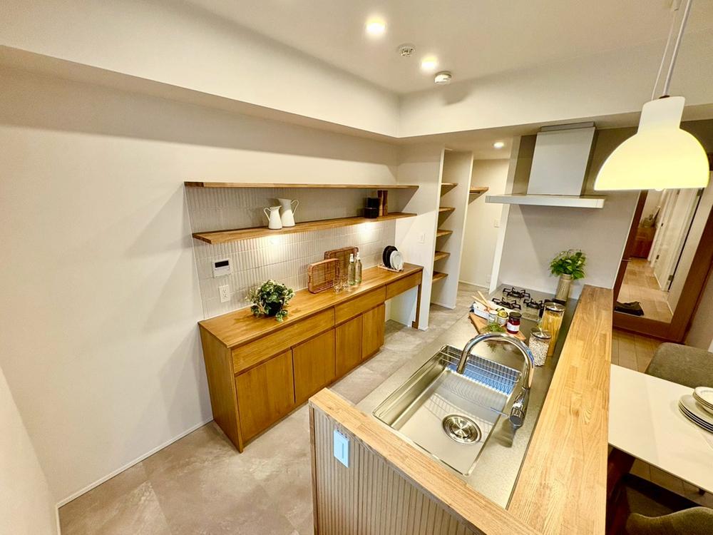 お洒落な内装に似合う、シンプルでスタイリッシュなキッチン。見た目と機能性のバランスが大事なポイントです。