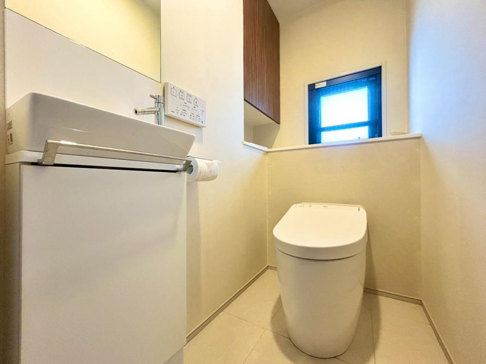 十分な広さと清潔感のあるカラーで纏まったおトイレ。LDKや居室とは離れており、洗面や浴室とも別の位置にある為、よりプライバシーへの配慮と落ち着いた空間となっております。