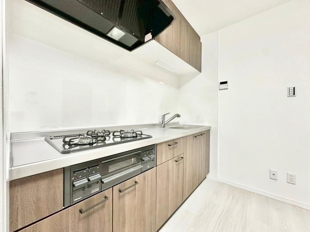 家事の時短に効果的な収納のし易いオールスライド収納、綺麗を保ち易い人造大理石トップ、静音シンクなど、使い勝手の良いキッチンを新規導入致しました。