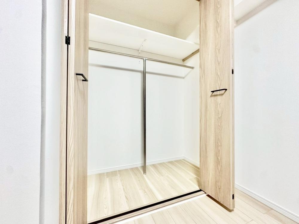 奥行きのあるクローゼットを採用。衣装ケースや、掃除機といった電化製品まで多くの物を収納できるようなつくりになっております。是非一度、ご自身の目でお確かめ下さい。