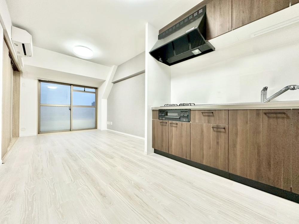 明るく開放的な空間が広がる、キッチン・ダイニング・リビング。室内には豊かな陽光が注ぎ込み、爽やかな住空間を演出。ホームパーティーでもゲストと一緒に料理を楽しみながら楽しい時間を過ごせそう。