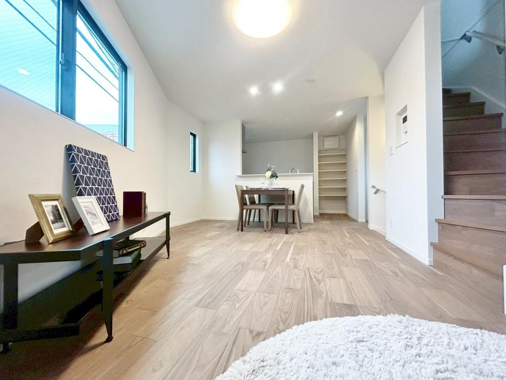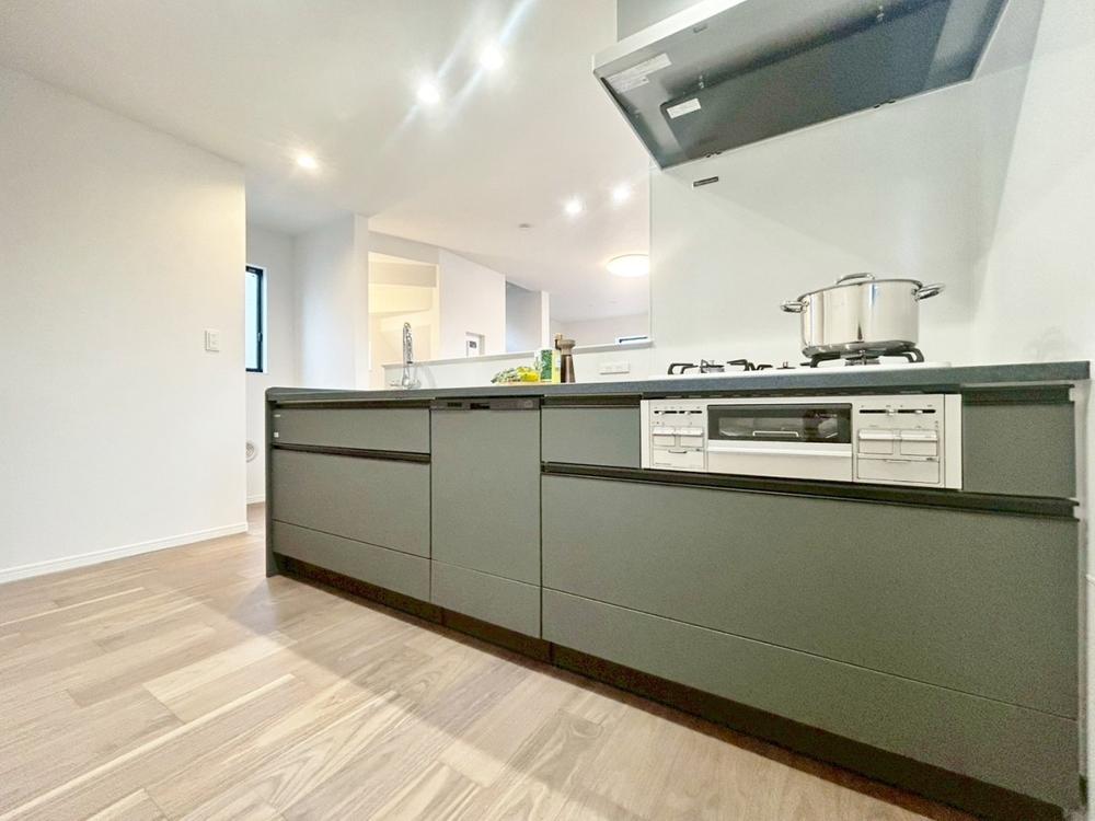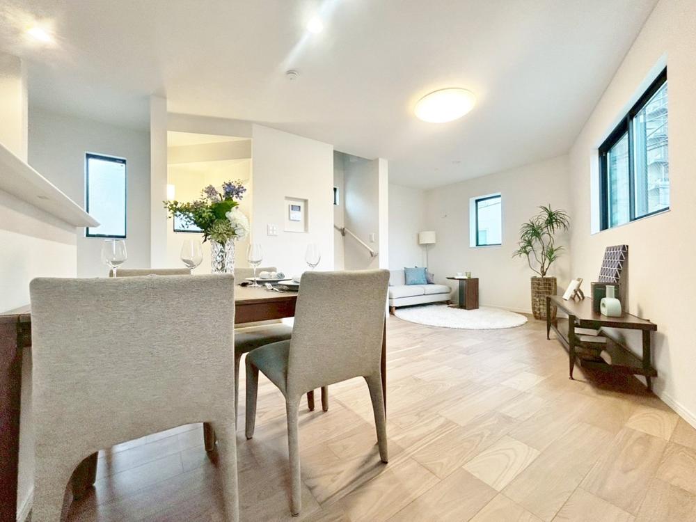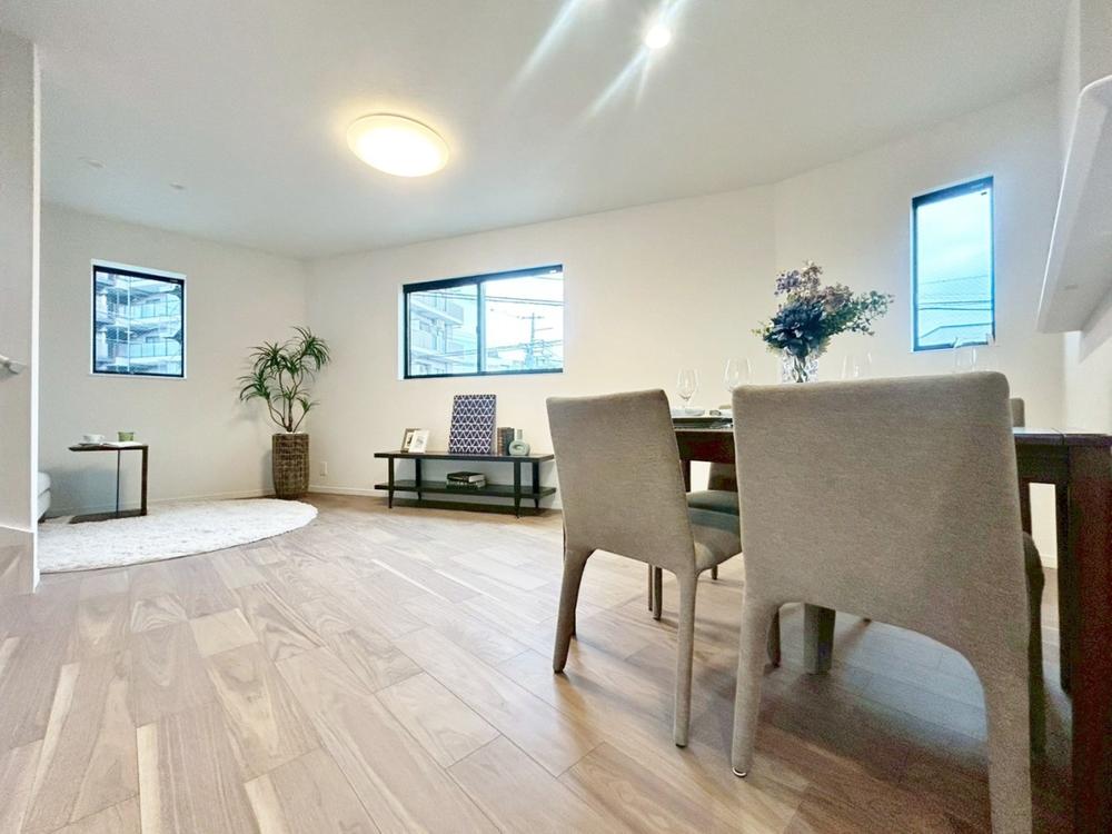 明るく開放的な空間が広がる、キッチン・ダイニング・リビング。室内には豊かな陽光が注ぎ込み、爽やかな住空間を演出。ホームパーティーでもゲストと一緒に料理を楽しみながら楽しい時間を過ごせそう。