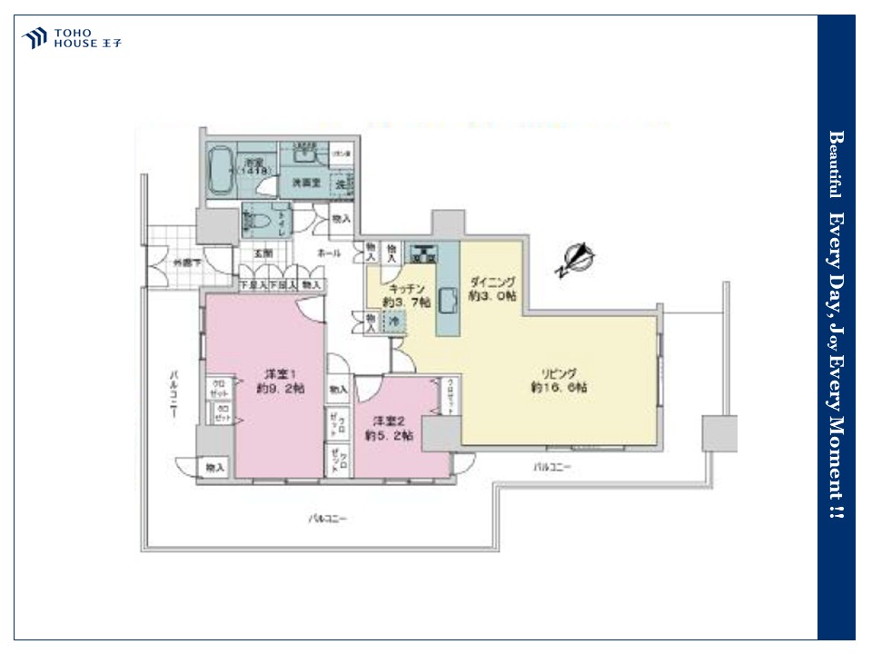 ■三方角部屋、3面バルコニー付!