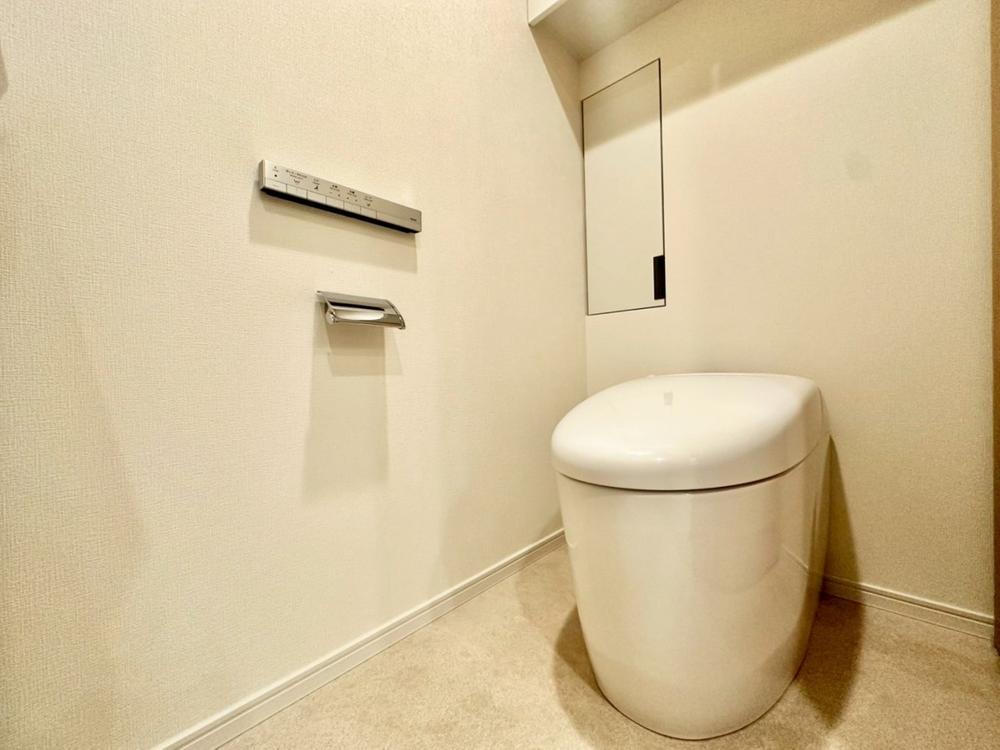 十分な広さと清潔感のあるカラーで纏まったおトイレ。LDKや居室とは離れており、洗面や浴室とも別の位置にある為、よりプライバシーへの配慮と落ち着いた空間となっております。