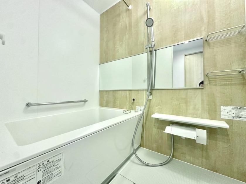 奥行きが長く足を延ばしてもラクラクのスペース。体の大きい方でも嬉しいワイドサイズ。また、カビが付きにくく軽くこすれば簡単に落ちるお掃除ラクラク仕様です。