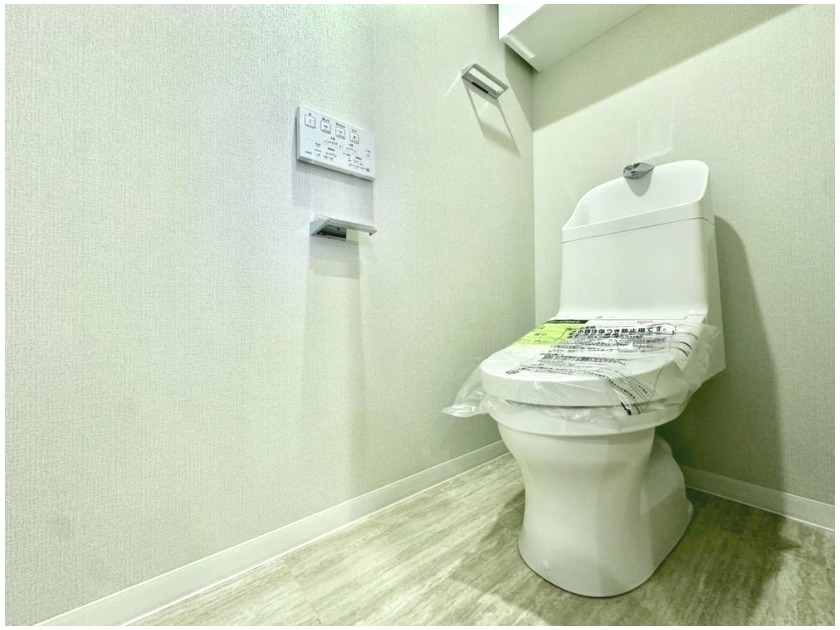 十分な広さと清潔感のあるカラーで纏まったおトイレ。LDKや居室とは離れており、洗面や浴室とも別の位置にある為、よりプライバシーへの配慮と落ち着いた空間となっております。