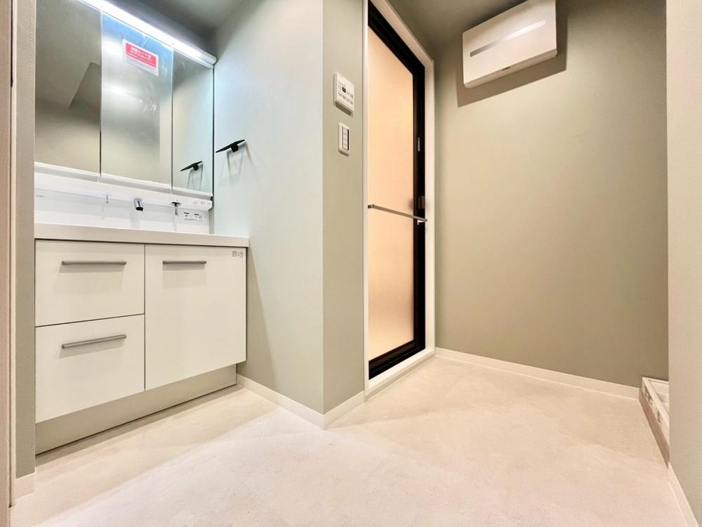 身だしなみのチェックがしやすい大きな鏡、下には収納がたっぷり。スッキリとした空間を演出いたします。