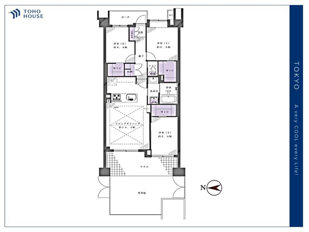 たっぷりと荷物が入るよう、ウォークインクローゼットを完備いたしました。画像と現地では大きさ、広さの感覚が違います。是非、ご自分の目で確かめてください。