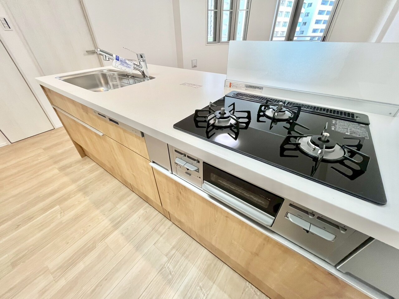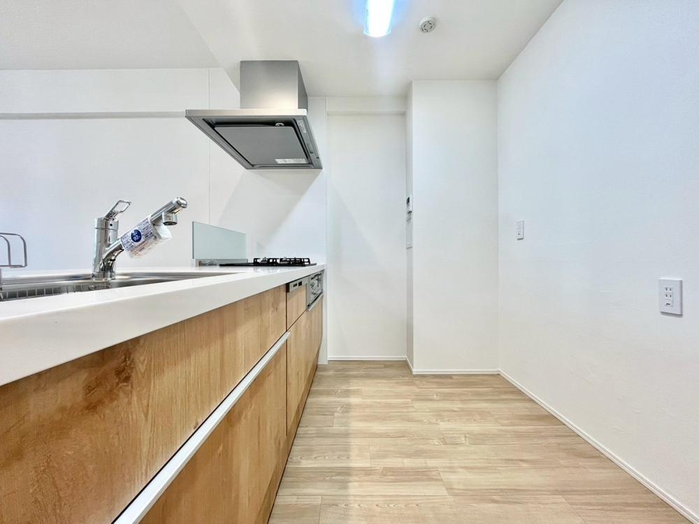 ナチュラルカラーで統一されたキッチンは、ご家族を見守る事の出来る生活導線上に配置。皆が集まるLDKを見ながら振るう料理は、愛情と温もりが詰まった素敵なモノになりそうですね。