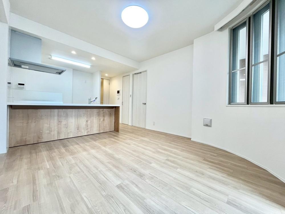 本画像はCGで作成しており、実際に現地に家具は置かれておりません。降り注ぐ陽光をいっぱいに浴びて、ライトと共にLDK全体を明るく・開放感のある空間にしました。