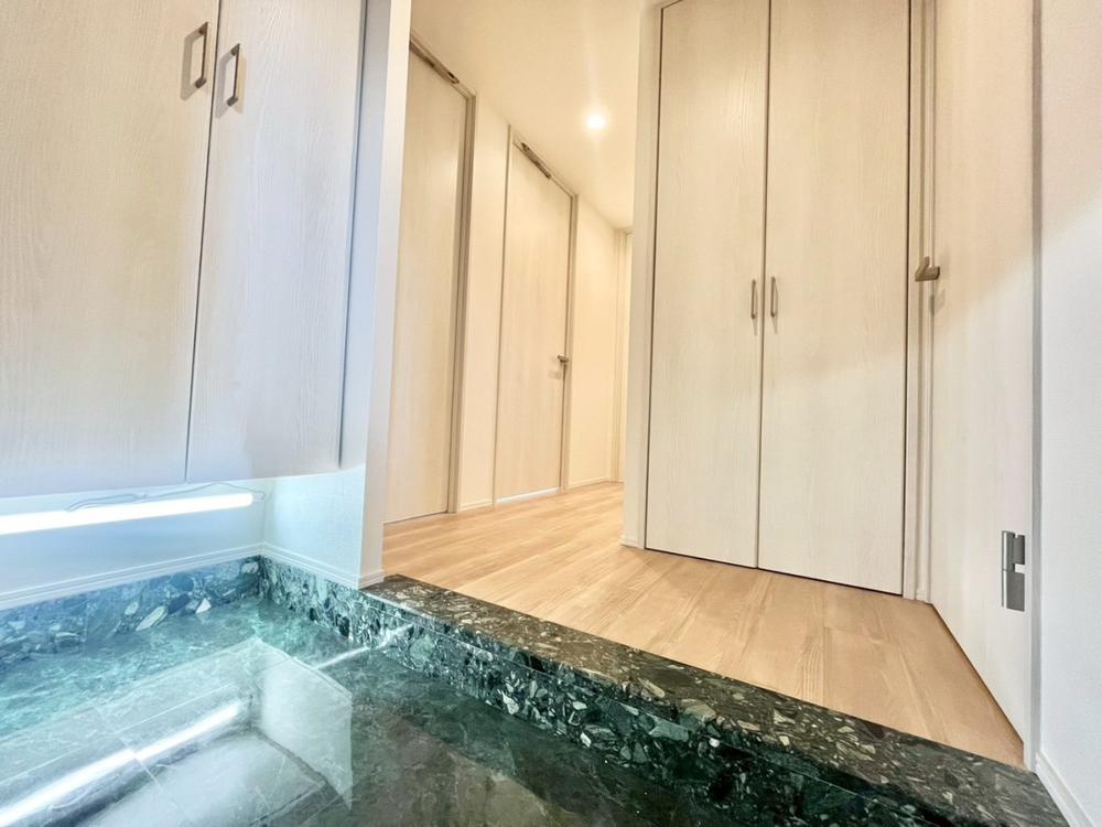 ホテルエントランスのような凛とした空間が存在しています。セキュリティーに守られている館内は静寂な中に、デザイナーの質感への拘りと四季折々の変化を感じることが出来る工夫がされております。