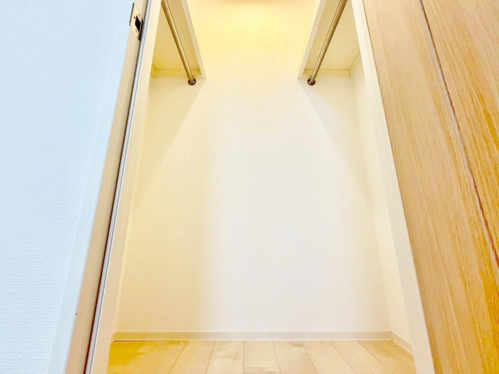 ウォークインクローゼットを完備。お子様のおもちゃやゴルフバックなど、大きなお荷物をお持ちの方や、季節物の家電製品やキャリーバック、お荷物が多い方でも安心のスペースです。