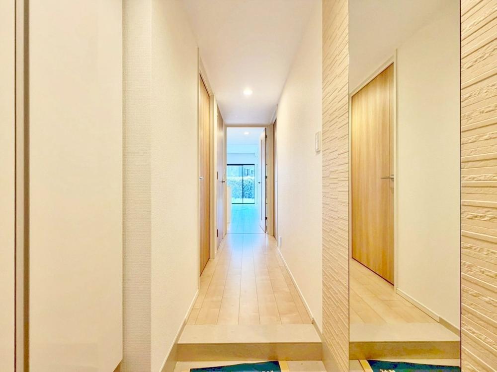 人を迎え入れる最初の場所だからこそ、清潔感があり纏まった空間にして頂ける様にゆとりあるシューズボックスを設置しました。おでかけの時も帰った時も、「我が家」を最初に感じでもらえる素敵な空間に。