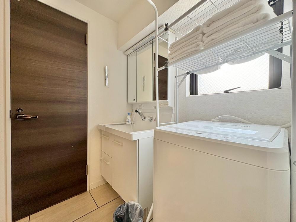 ホワイトを基調にまとめた室内はホテルライクな空間を創造しております。身だしなみのチェックがしやすい大きな鏡、下には収納がたっぷり。可動棚もあるのでスッキリとした空間をお作りいただけます。