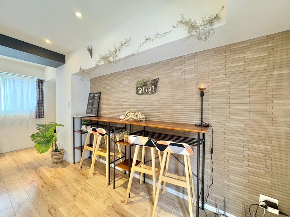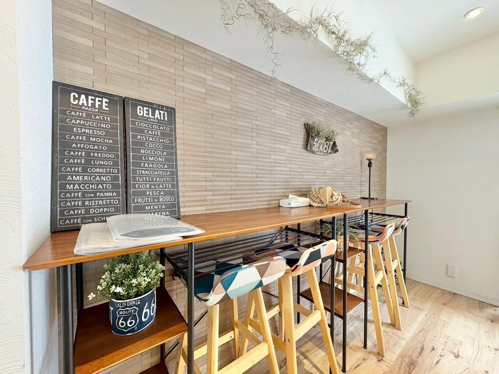 リビングの一角にスタディースペースを設置致しました。キッチンに近い箇所ですのでレシピのチェックやお子様の勉強スペース、PCスペースとしても使えるように配慮しております。