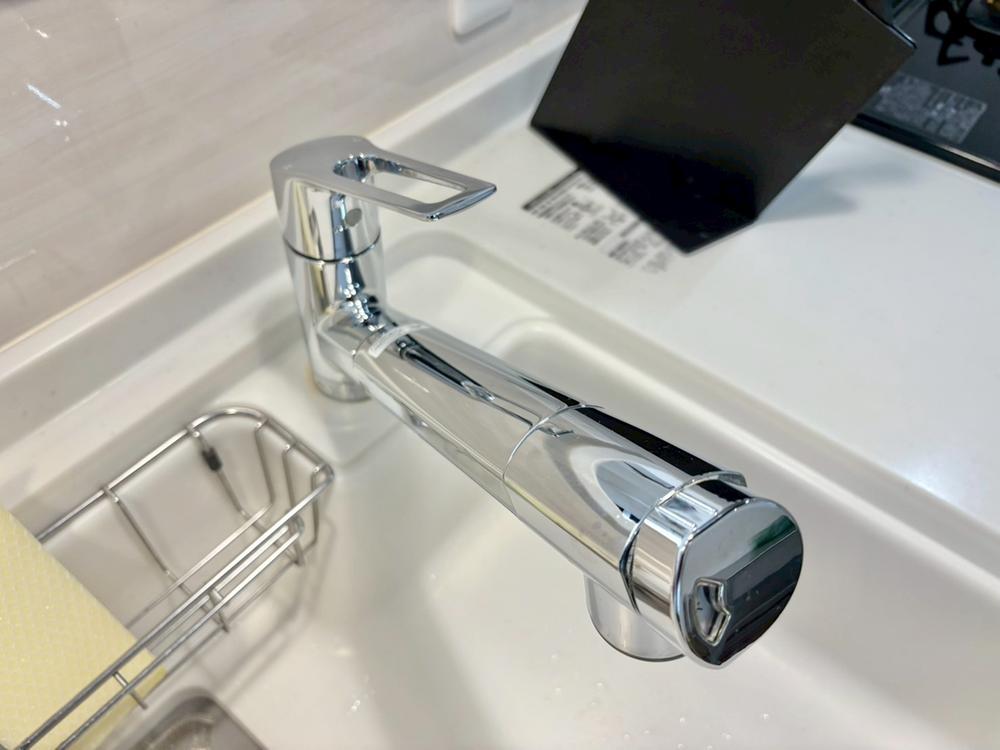 家事の時短に効果的な収納のし易いオールスライド収納、綺麗を保ち易い人造大理石トップ、静音シンクなど、使い勝手の良いキッチンを新規導入致しました。