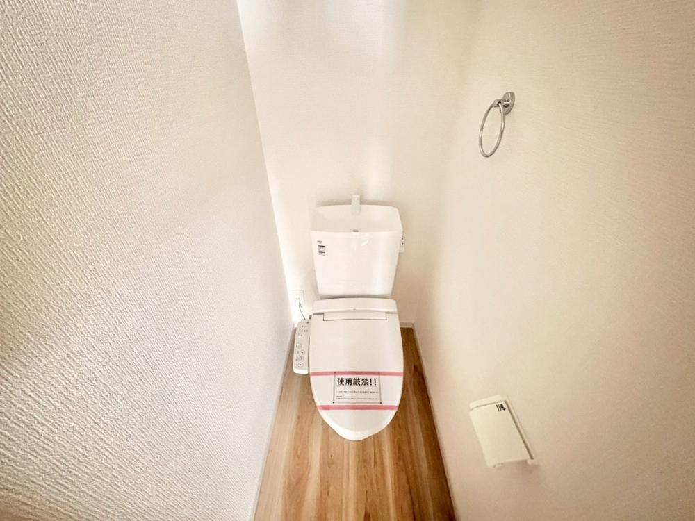 十分な広さと清潔感のあるカラーで纏まったおトイレ。時間に余裕とゆとりを持たせます。