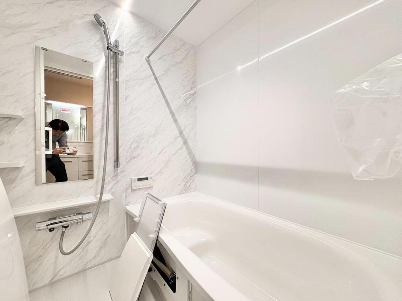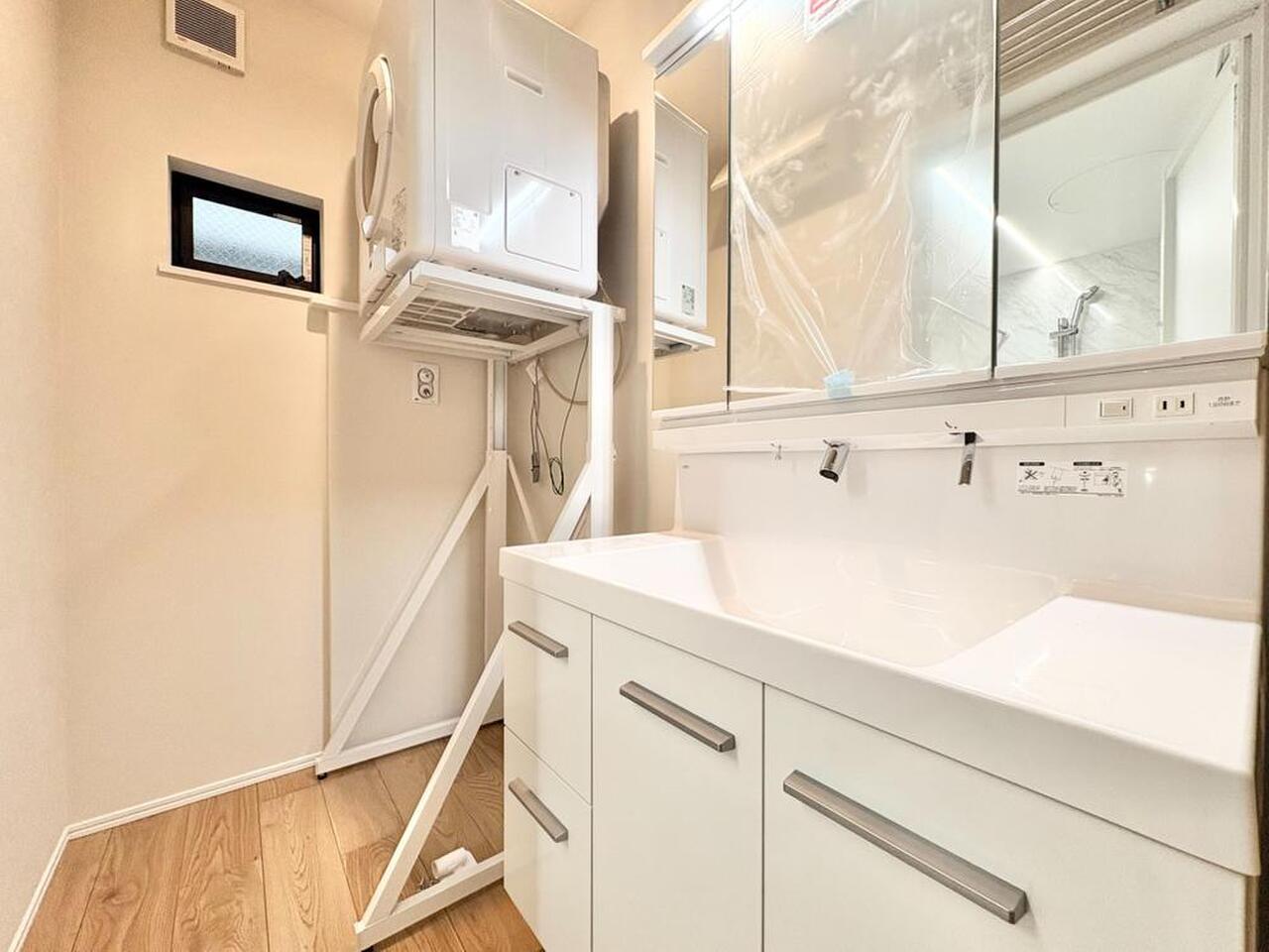お家の中でも特にプライベートスペースとなる洗面所は、洗濯場所と浴室を同じ空間でまとめております。