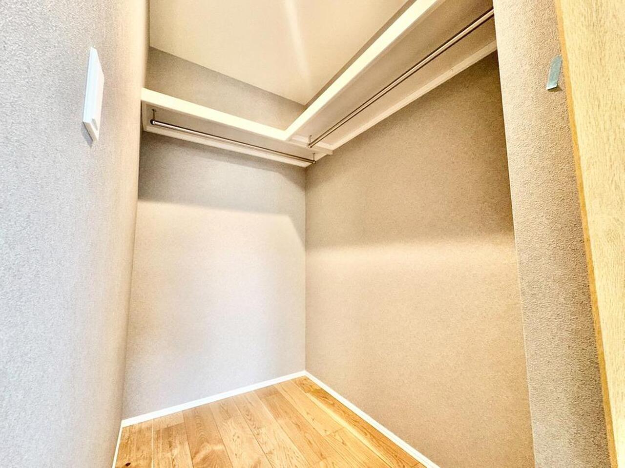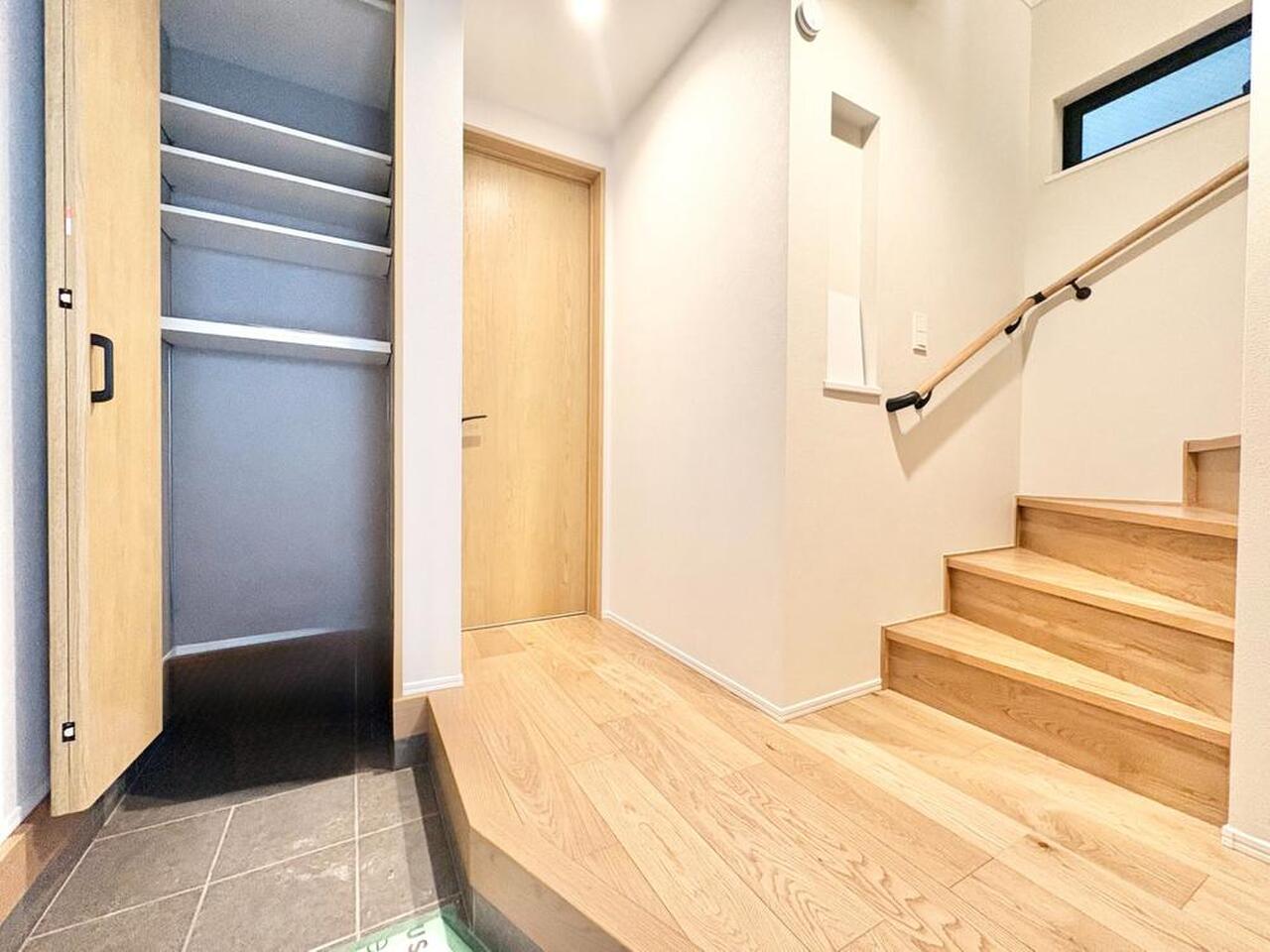 建物内部の収納には拘りました。共有部分に設けた収納。お荷物が多い方にも安心です。