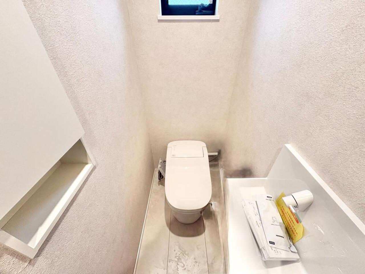 十分な広さと清潔感のあるカラーで纏まったおトイレ。時間に余裕とゆとりを持たせます。
