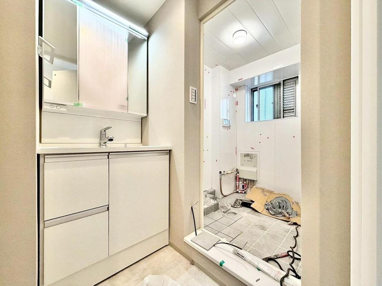 お家の中でも特にプライベートスペースとなる洗面所は、洗濯場所と浴室を同じ空間でまとめております。