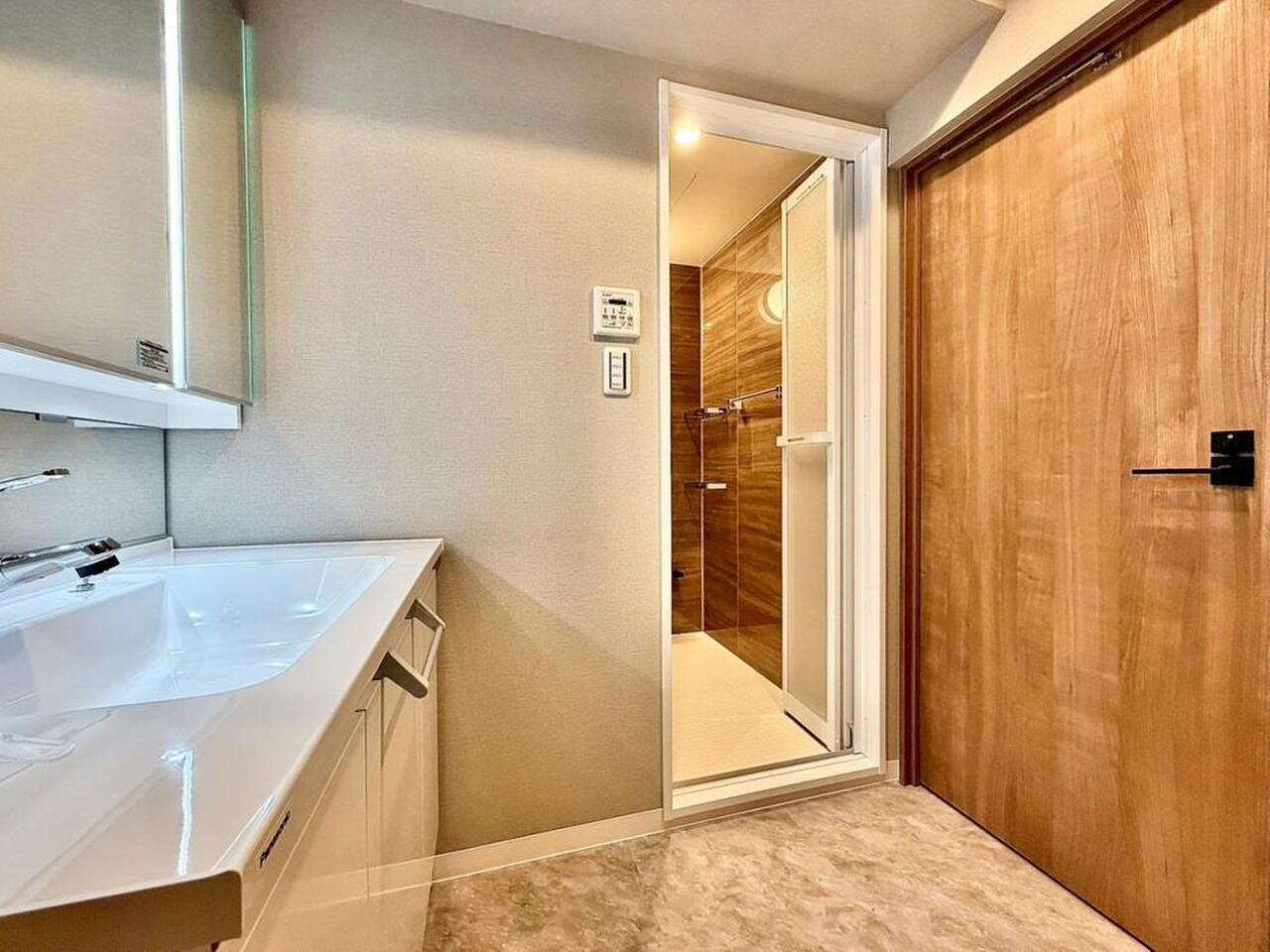お家の中でも特にプライベートスペースとなる洗面所は、洗濯場所と浴室を同じ空間でまとめております。