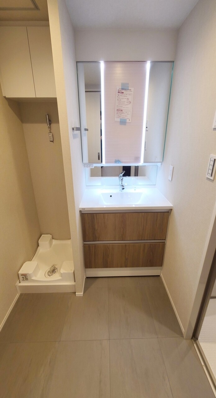 スキンケア用品などをすっきり整理できます。また収納棚を多く設け、脱衣スペースを広く確保しております。
