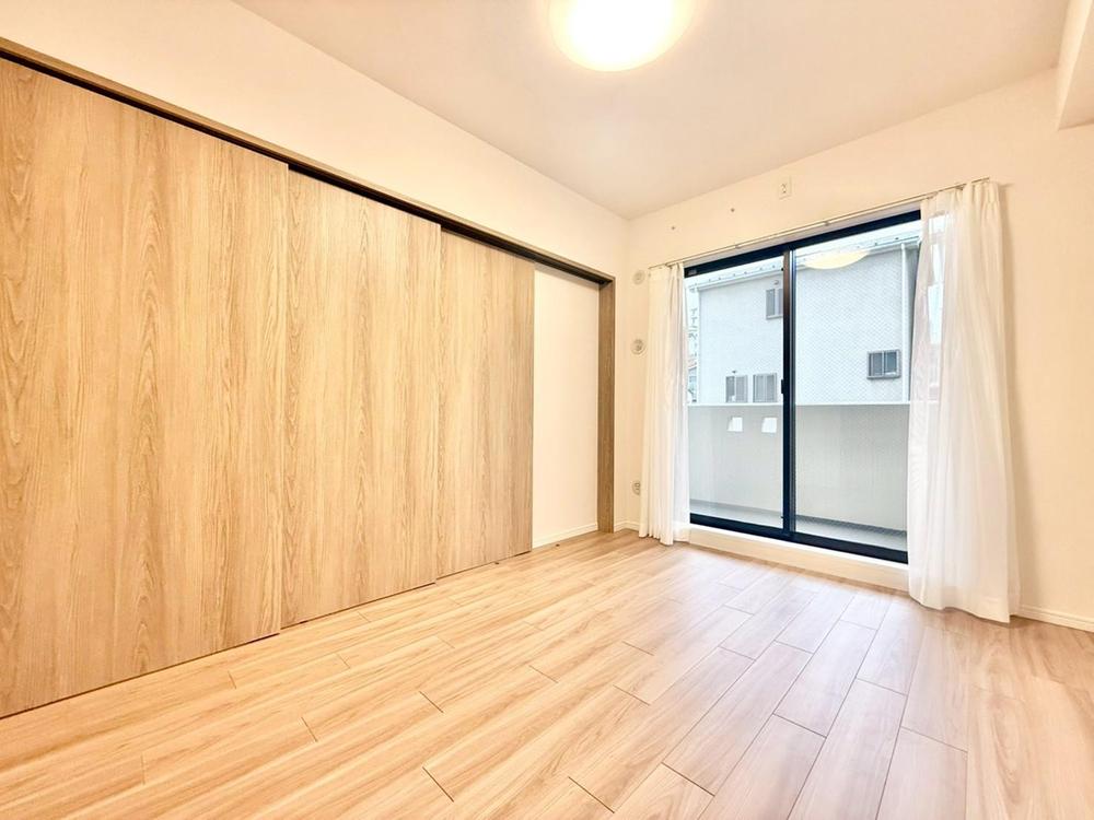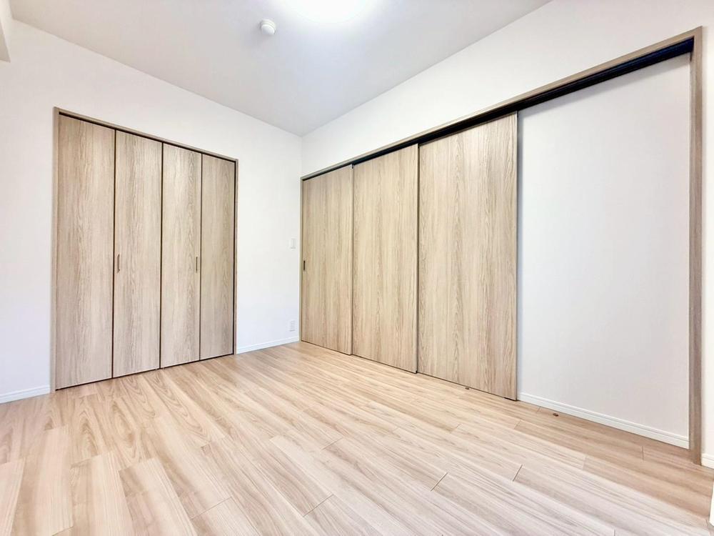 明るい木目調のフローリングが心地よい居室。大容量のクローゼットが複数あり、お子様の成長や家族構成の変化に合わせてフレキシブルに活用できます。