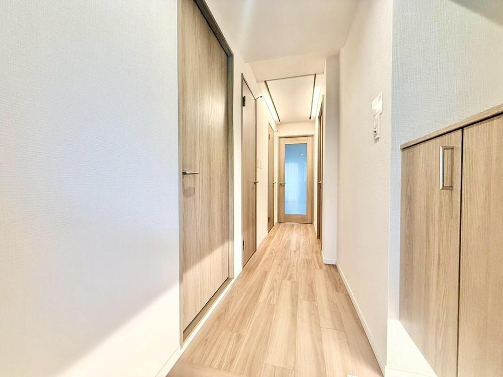 明るい光が差し込む、清潔感あふれる玄関。大容量の収納で、家族みんなの靴もすっきり片付き、気持ちよくお出かけできます。