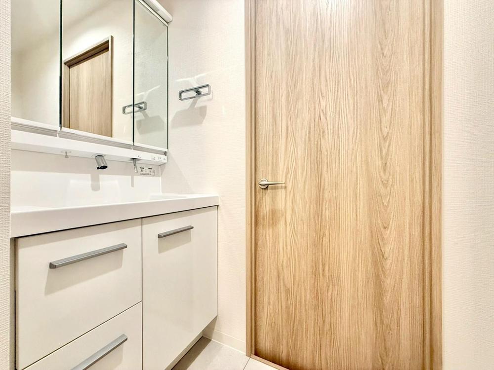 明るく清潔な洗面所は、忙しい朝の準備も快適に。たっぷりの収納スペースで、家族の洗面用具も整理整頓しやすく、いつもすっきりとした空間を保てます。