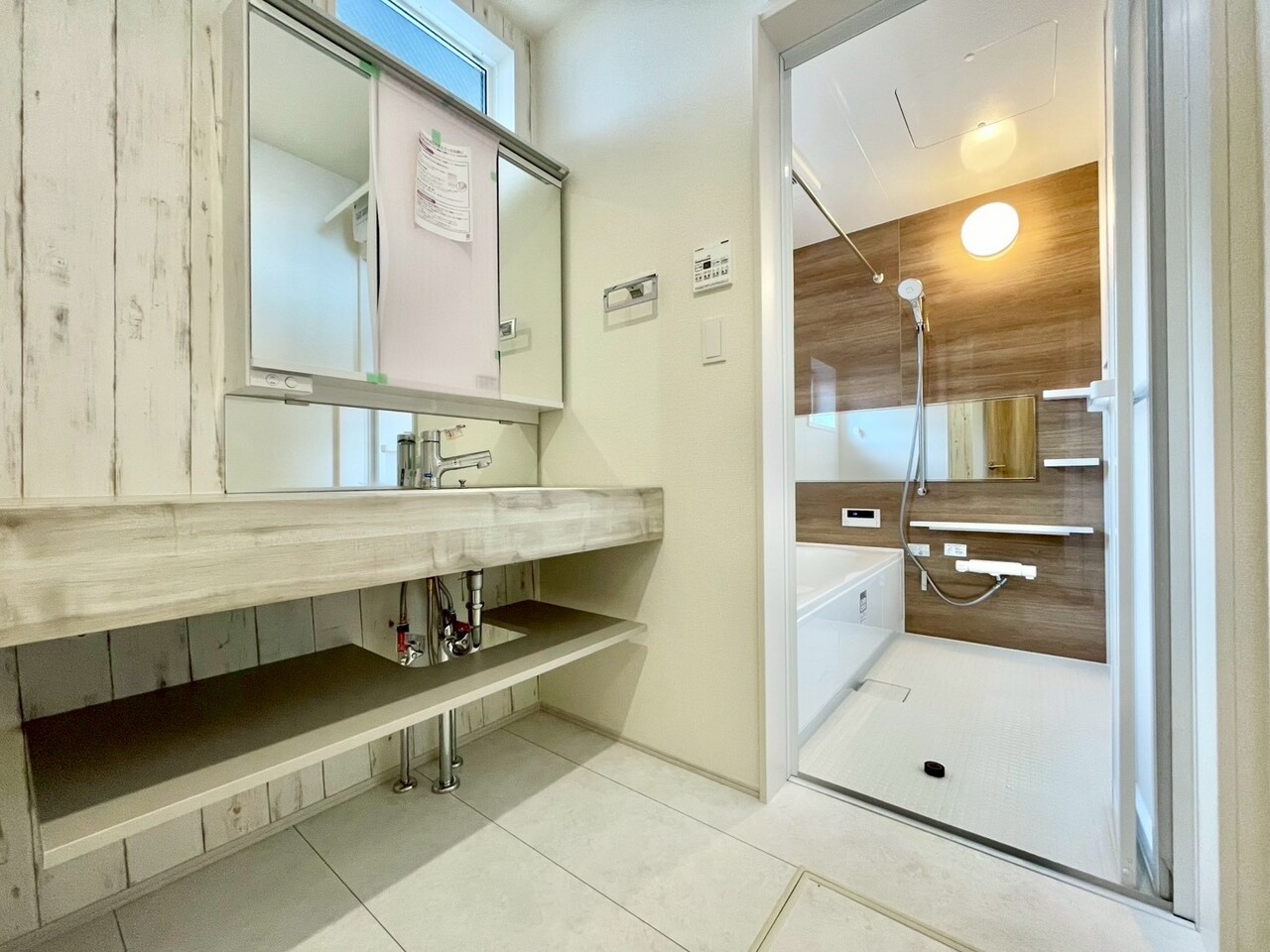 平日の朝であっても、落ち着きとくつろぎを感じられる。歯磨き粉が行方不明になるようなごちゃごちゃ感も解消。スムーズに身支度が完了します。コーディネートされた空間で気持ちよく身だしなみを整えられます。