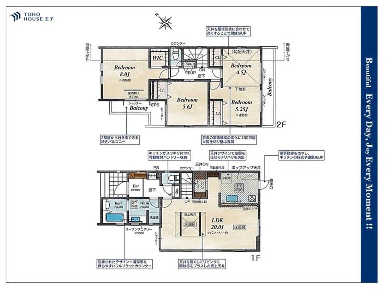 大きな窓からたっぷりと陽光が注がれる明るい空間。家族の成長に対応できる永住仕様の間取り。一日の疲れを癒やしてくれる、時を忘れて過ごせる空間。