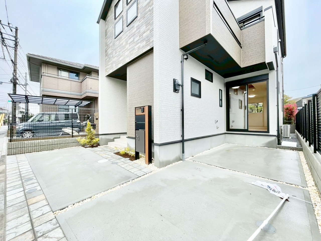 ファミリーカーの需要が多い中、駐車場も広めに確保いたしました。ご主人様のお車のお手入れにも気合が入りますね。