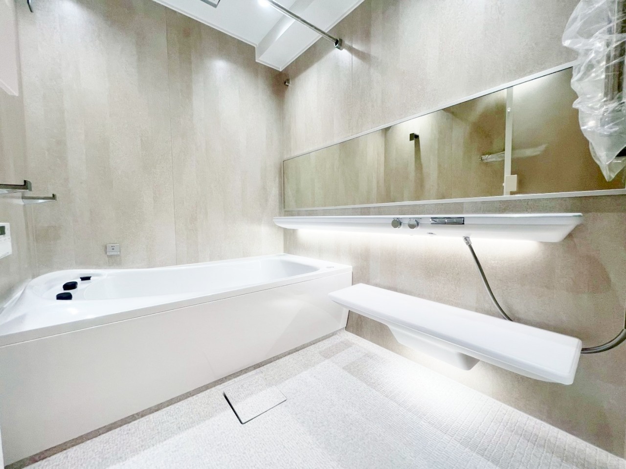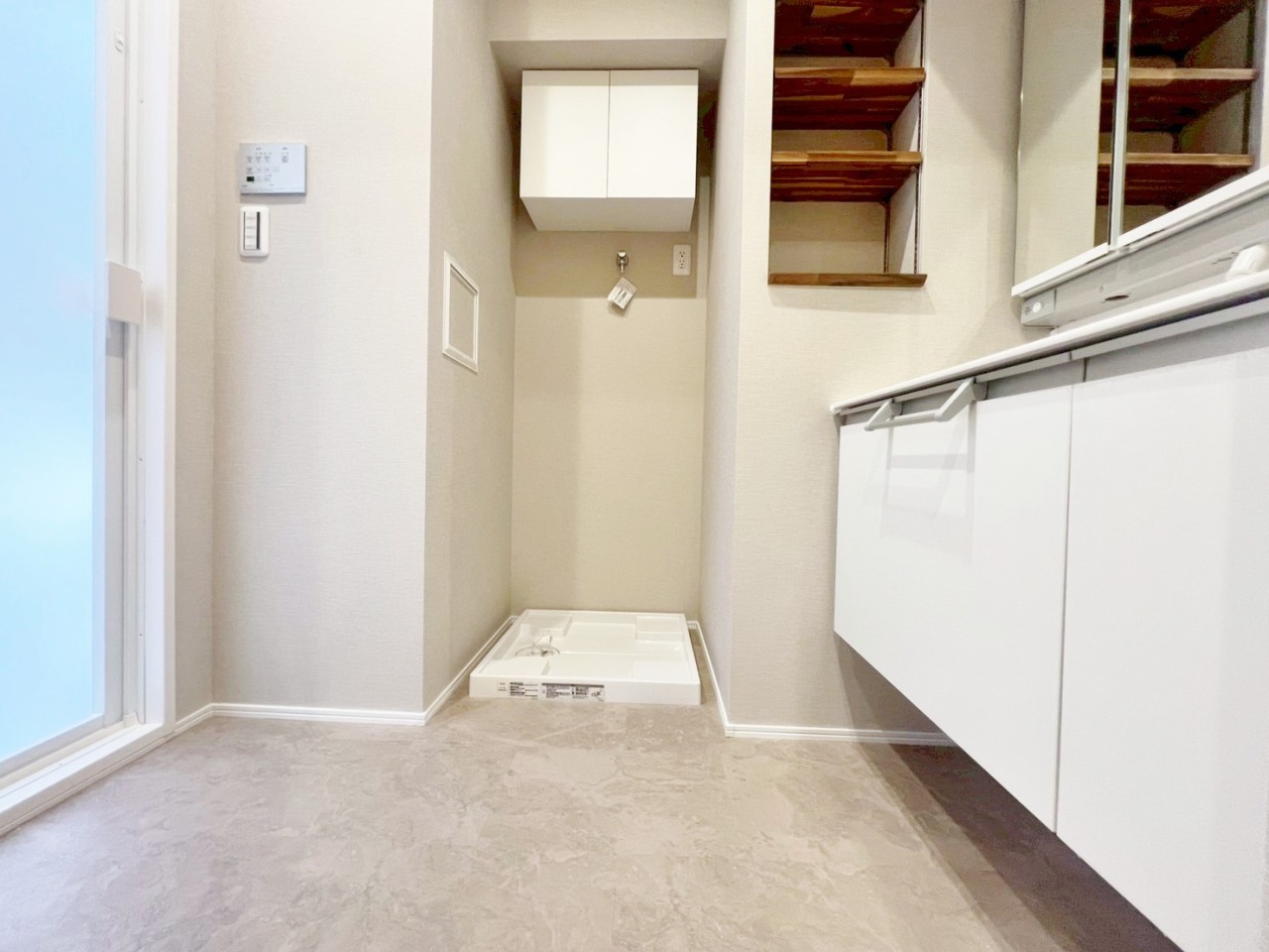 お家の中でも特にプライベートスペースとなる洗面所は、洗濯場所と浴室を同じ空間でまとめております。