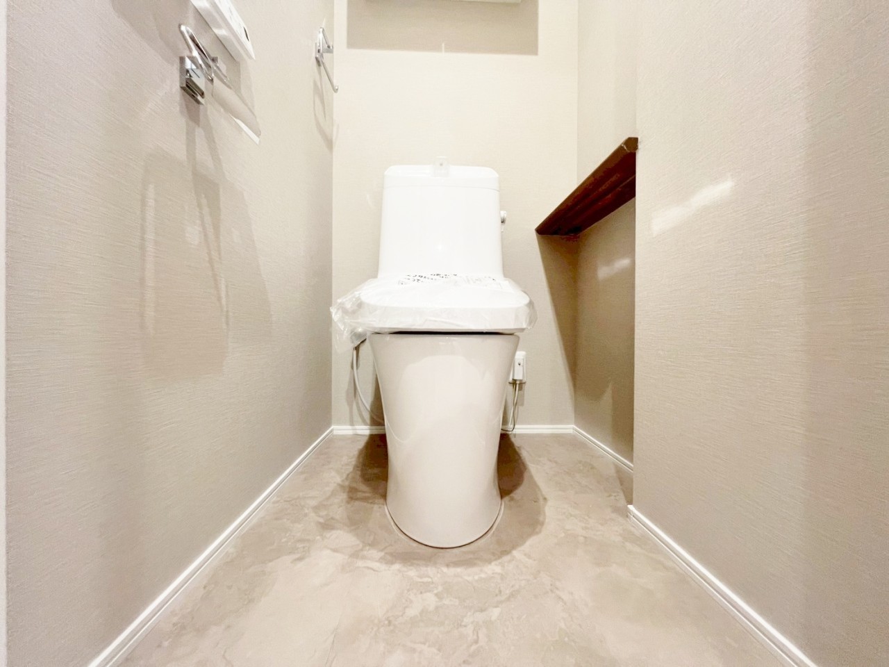 清潔な空間であって頂けますように、目に留まるだけではなく、汚れをふき取り易いフロアと壁紙をチョイス。