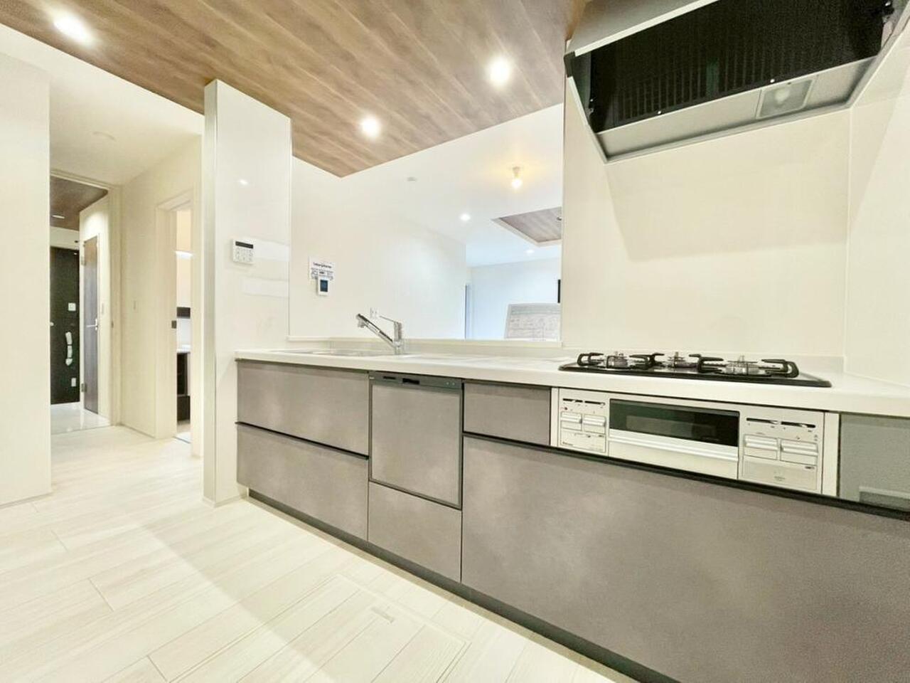 ナチュラルカラーで統一されたキッチンは、ご家族を見守る事の出来る生活導線上に配置。皆が集まるLDKを見ながら振るう料理は、愛情と温もりが詰まった素敵なモノになりそうですね。