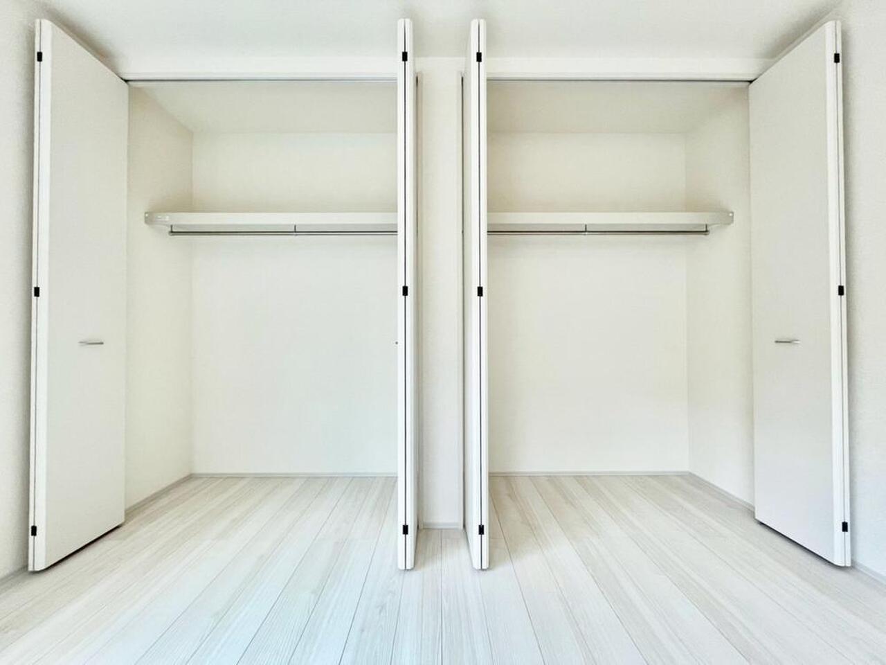 奥行きのあるクローゼットを採用。衣装ケースや、掃除機といった電化製品まで多くの物を収納できるようなつくりになっております。是非一度、ご自身の目でお確かめ下さい。