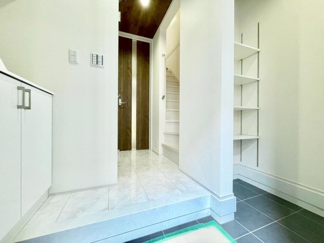 玄関部分には土間収納を設け、玄関部分を広々空間に。玄関周りの導線の良さを是非一度現地でご確認下さいませ。