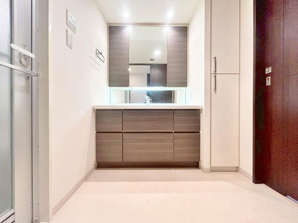 明るく清潔感あふれる洗面所は、家族の身支度をスムーズに。鏡裏と下部の豊富な収納で、洗面周りをいつもスッキリ保ち、快適な朝を迎えられます。
