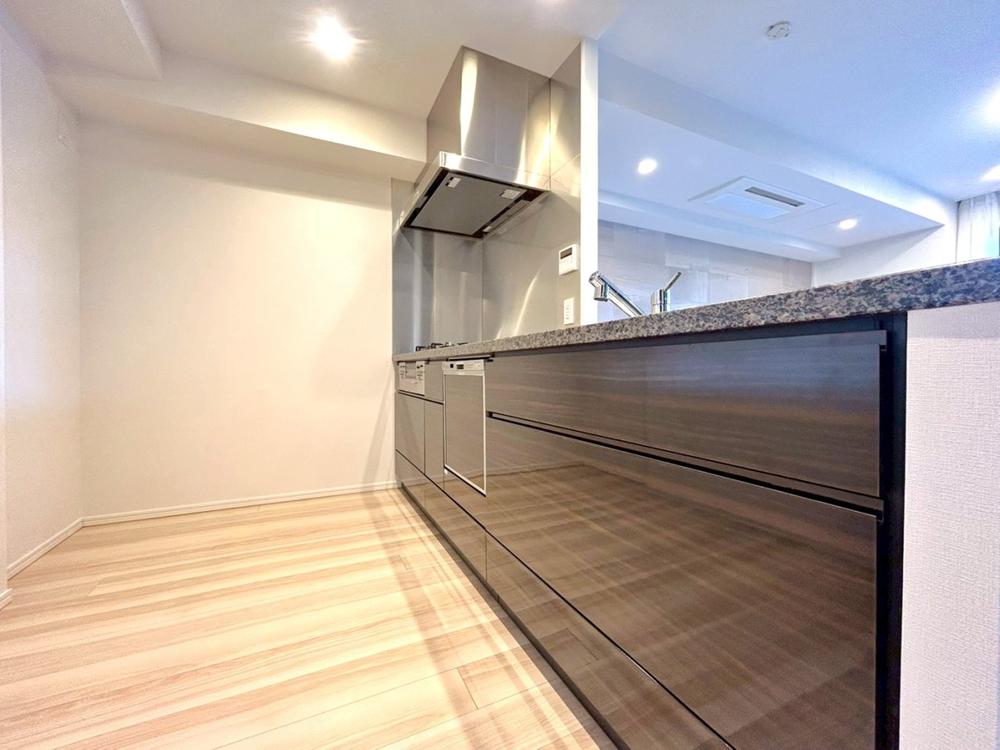 家事の時短に効果的な収納のし易いオールスライド収納、綺麗を保ち易い人造大理石トップ、静音シンクなど、使い勝手の良いキッチンを新規導入致しました。