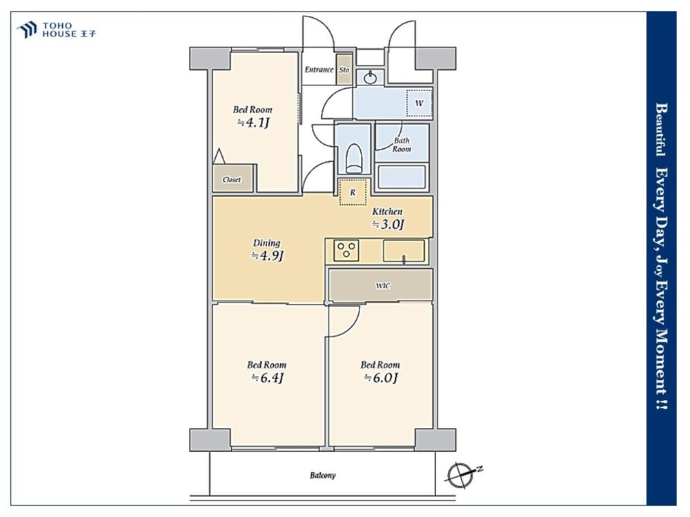 暖かい陽ざしが差込むバルコニーは、晴れた日には、洗濯物が良く乾きます。また、風通しも良好です。