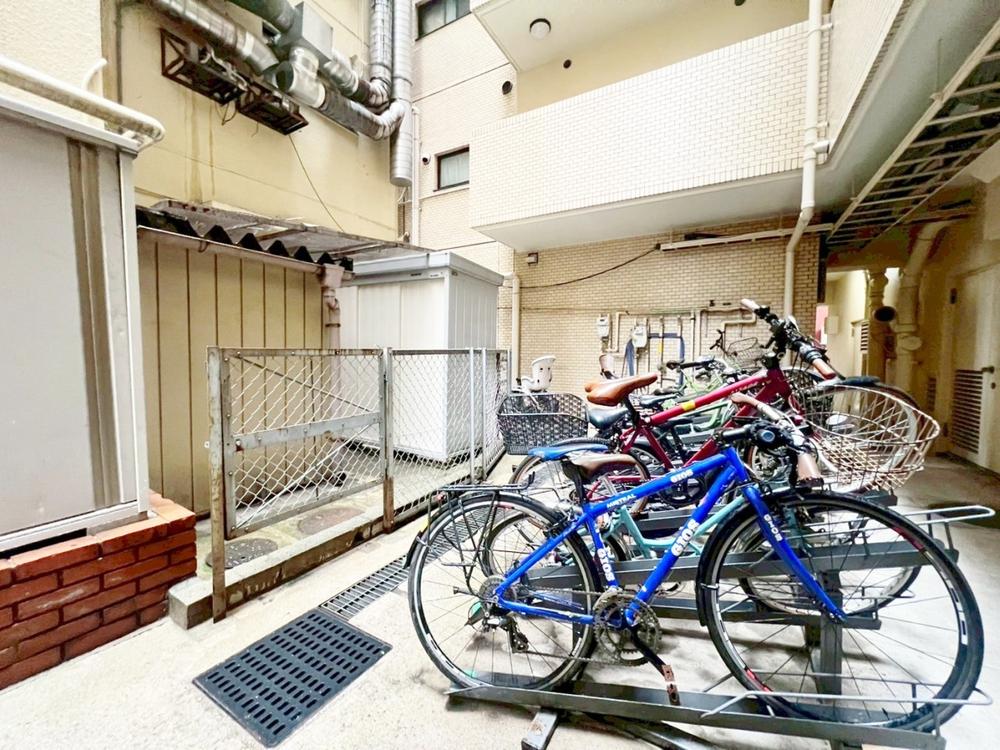 広さがしっかり確保された、敷地内駐輪場。