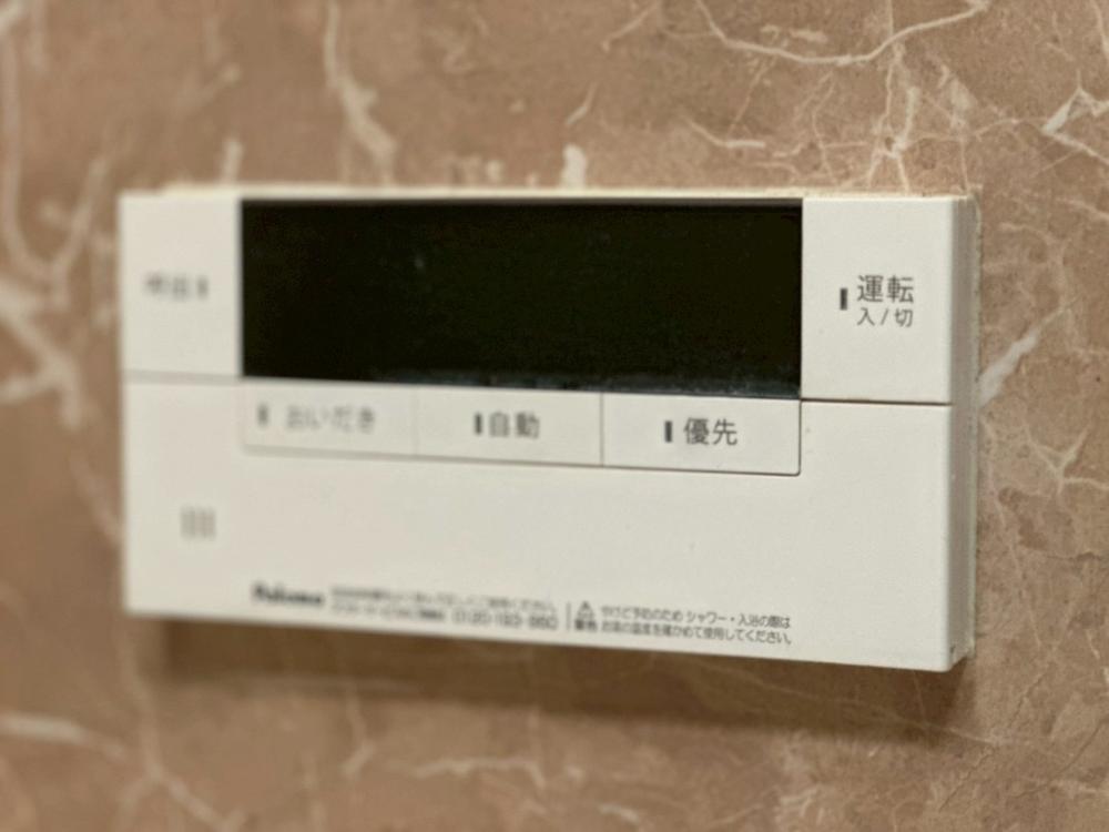 お風呂場と台所に操作リモコンがあり、キッチン近くにある給湯リモコンは、お料理の最中でもリビングで寛いでいるなかでもボタン一つで簡単に沸かせて便利ですね。