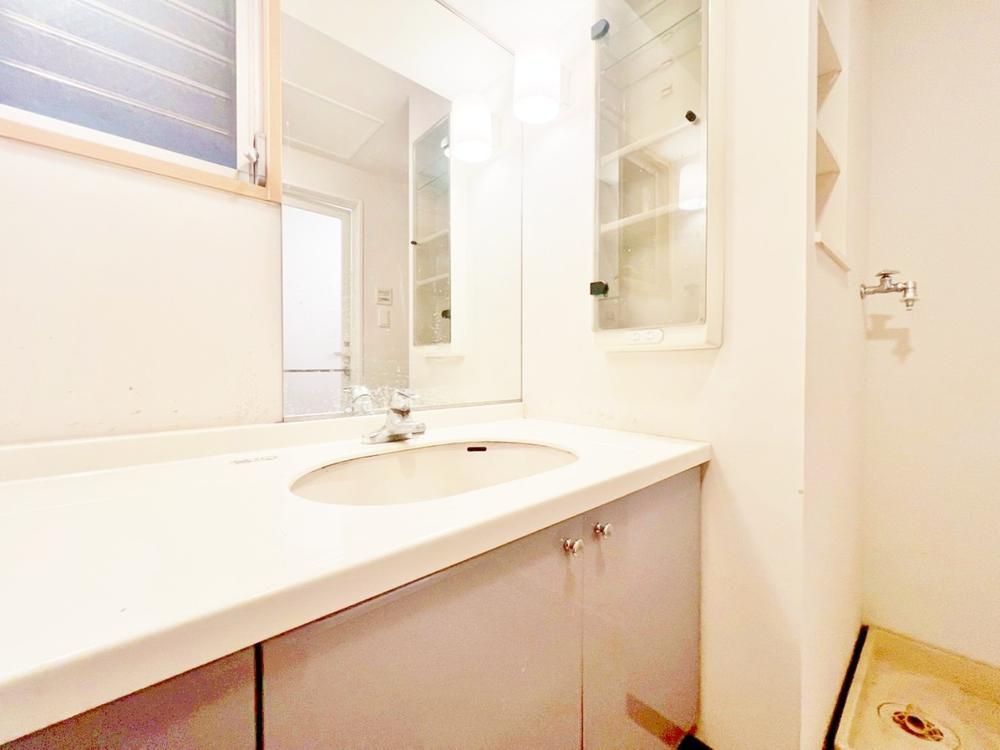 シンプルだからこそ使いやすい。スタンダードなデザインの洗面ボウルは清潔感あるオフホワイトです。(リノベーション予定)