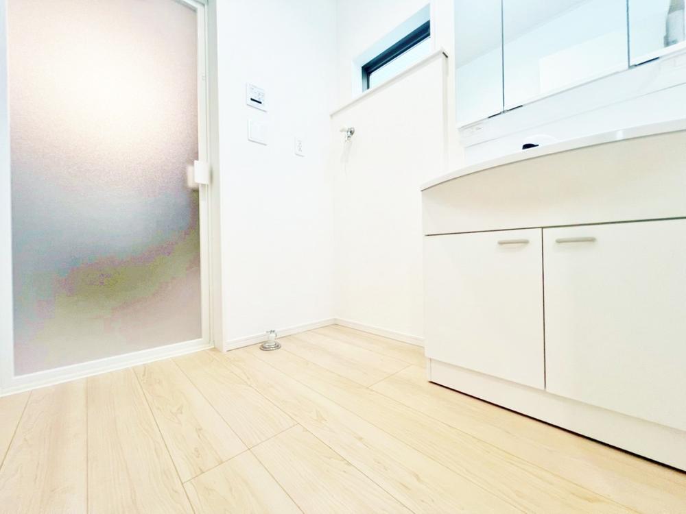お家の中でも特にプライベートスペースとなる洗面所は、洗濯場所と浴室を同じ空間でまとめております。