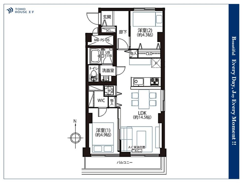 充分な広さが確保されたバルコニー。日当たりのよい住宅エリアですので、多くの陽光が降り注ぎ、室内には陽だまりを生み出してくれます。