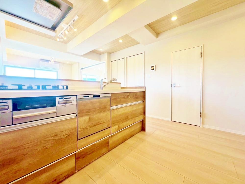 重厚感のあるカラーデザインで統一されたキッチンは、ご家族を見守る事の出来る対面式を採用。皆が集まるLDKを見ながら振るう料理は、愛情と温もりが詰まった素敵なモノになりそうですね。