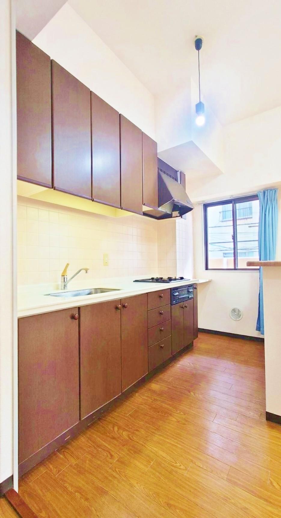 システムキッチンの収納は、デッドスペースになりやすいキャビネット内を有効活用できる、スライド式収納を採用しました。また、シンクとカウンターは隙間なく接合され、お手入れ簡単。