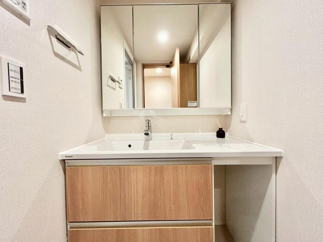 十分な大きさの洗面台は収納もさる事ながら、身だしなみチェックや歯磨きなど、朝の慌ただしい時間でもホテルライクなスペースで余裕とゆとりを感じて頂けます。